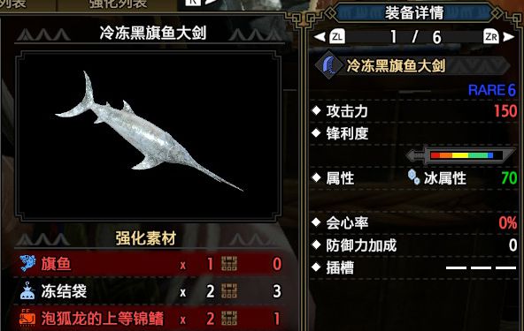 另外这次旗鱼大剑外形再度有了变化,整合了旧版的模型和冰原版的冰冻贴图。