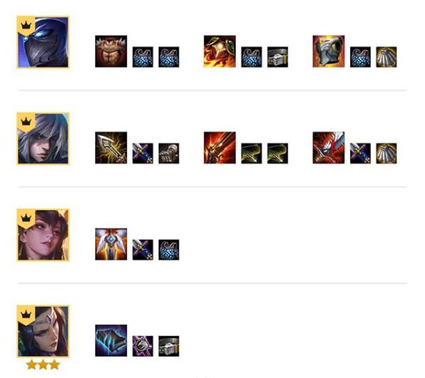 七人口搜牌组建六玉剑仙体系,同时将主力单位质量提升二星。八人口开始追三星的男刀与莫甘娜,其他人胡牌也可以拿,因为这套阵容只停留在八人口。八升九需要80块钱的经济,运气好一点三星核心都有了,九人口纯属浪费钱!