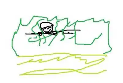 跳到草丛上面,在爬进草丛中间,居高临下,不但视野好,而且,大多数人,一般都会看地面和边缘找人。