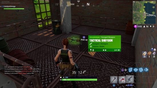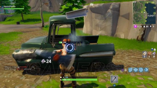 虽然霰弹枪不应该总是作为主武器使用,但是一旦有机会总是应该留一把在手边——威力弱一点的也没有关系。《堡垒之夜》中的霰弹枪射程很远,散射范围很大(至少目前如此),这意味着它们很适合范围攻击的枪械,可以用来放倒已经受伤的目标。我们经常见到玩家使用霰弹枪作为收割武器;他们可能会先向敌人附近发射一枚火箭打掉护盾,或者用步枪缩小差距,但是霰弹枪常常被他们用来终结敌人。不要害怕用霰弹枪进行近距离或中距离作战。瞄高一点,因为爆头会很疼。