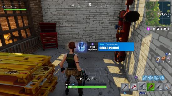 找到好枪是一回事……但是说真的,在对战中胜出的最佳方式是找到护盾药剂。《堡垒之夜》没有对其生命系统的运作方式进行说明,但是最直观的是蓝色护盾药剂能使你能承受更多伤害,有和没有完全是两个概念。在《堡垒之夜》中搜寻物资时,碰到护盾药剂一定要第一时间喝下去从而开启护盾,并且将无法立即使用的护盾叠加携带。它们值得随身携带;你的角色能够在2秒钟内喝掉一小瓶护盾药剂,足够你蹲在角落里或建造几堵墙快速振作起来然后摆脱敌人。