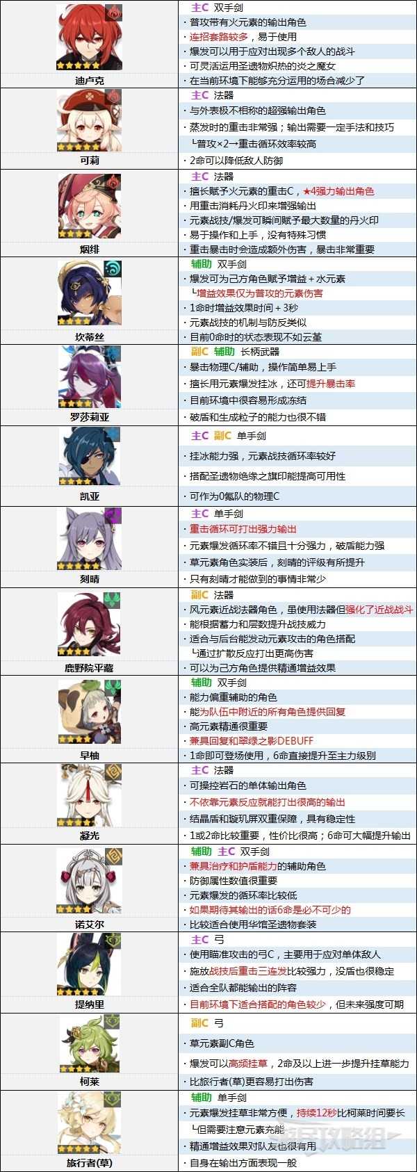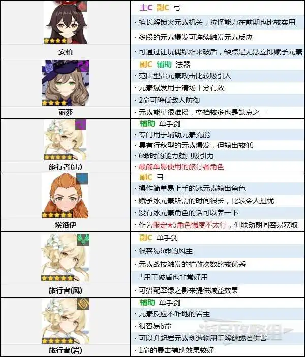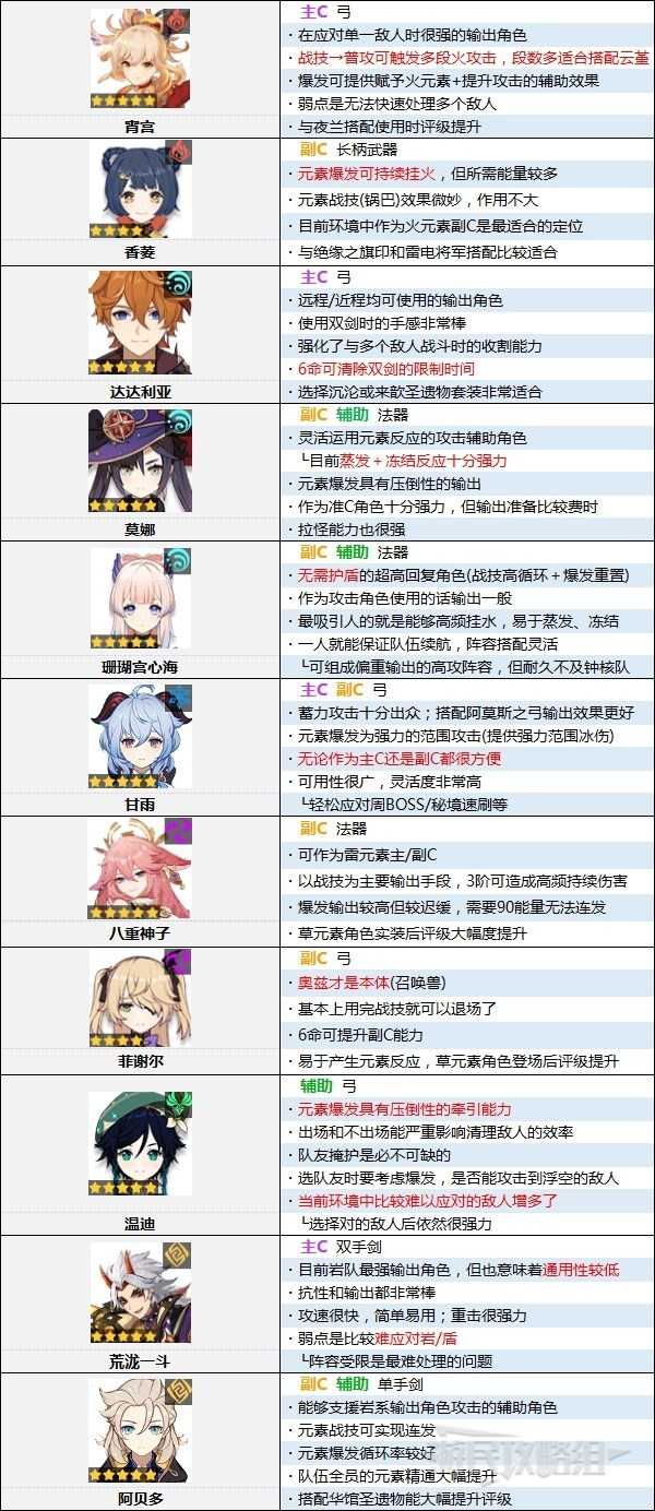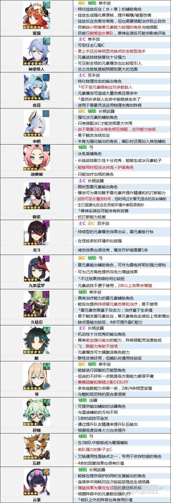 ※风元素角色的评价由于圣遗物【翠绿之影】四件套的减益效果多数都会上榜,其中具有特殊减益能力的角色评级较高。