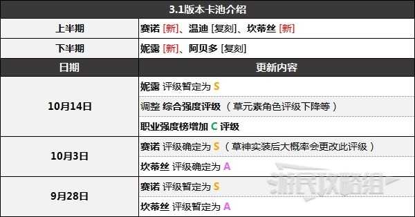 《原神》在3.1版本下半期更新了五星角色妮露,许多小伙伴可能还不太清楚妮露的强度评级,下面就为大家介绍一下《原神》3.1下半期角色节奏榜,希望对大家有所帮助。