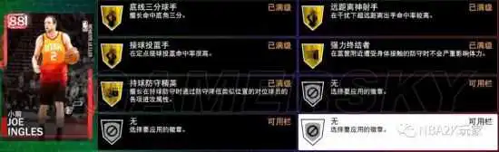 这张英格尔斯进攻端外线投射能力不错,尤其是三分能力作为一张红卡小前而言极强,空位三分和受干扰三分都给到了93的数值;内线得分能力几乎没有,86的控球和78的持球速度让他拥有一些的持球能力;防守端中规中矩,正常对位没有问题,203的身高模型打小前合格。