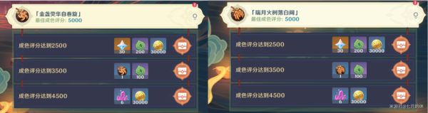 奖励:30原石+6w摩拉+6个魔矿+3本大经验书+食谱:丰年有余