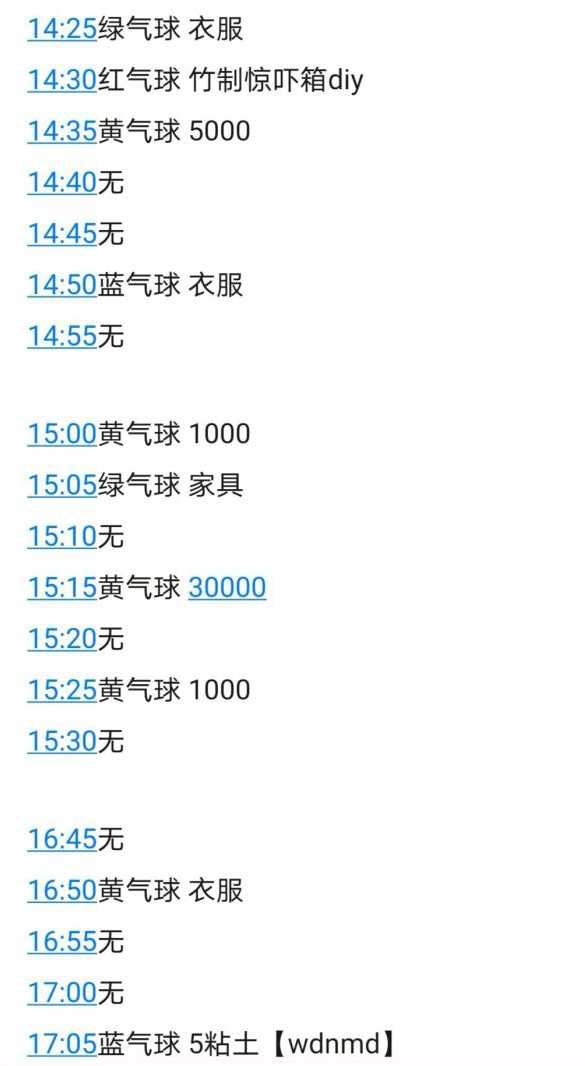 普通非彩蛋气球会在XX时X0分或XX时X5分于上风向海岸某纬度出现,开始横向飘,只要提前站在上风向海岸最南边时间一到就沿海岸往上走搜索,如果有气球刷新就一定能看到,间隔5分钟10分钟15分钟都有可能刷新,一般是10分钟,所以需要每5分钟查看一次,所谓上风向就是风来的方向可以看云或烟囱的烟的走向判断以我的北半球岛屿为例,白天就是右边的海岸晚上是左边的海岸。