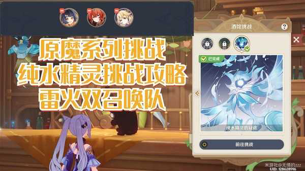 3.纯水精灵会自觉附带水元素附着(重点),所以我们在挑战时,也是需要充分利用这一点来进行破关,我们可以利用蒸发/感电反应