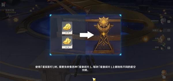 接着我们找到这个有箭头指着的星辰影灯处装入星象碎片,打开屏障进入房间。