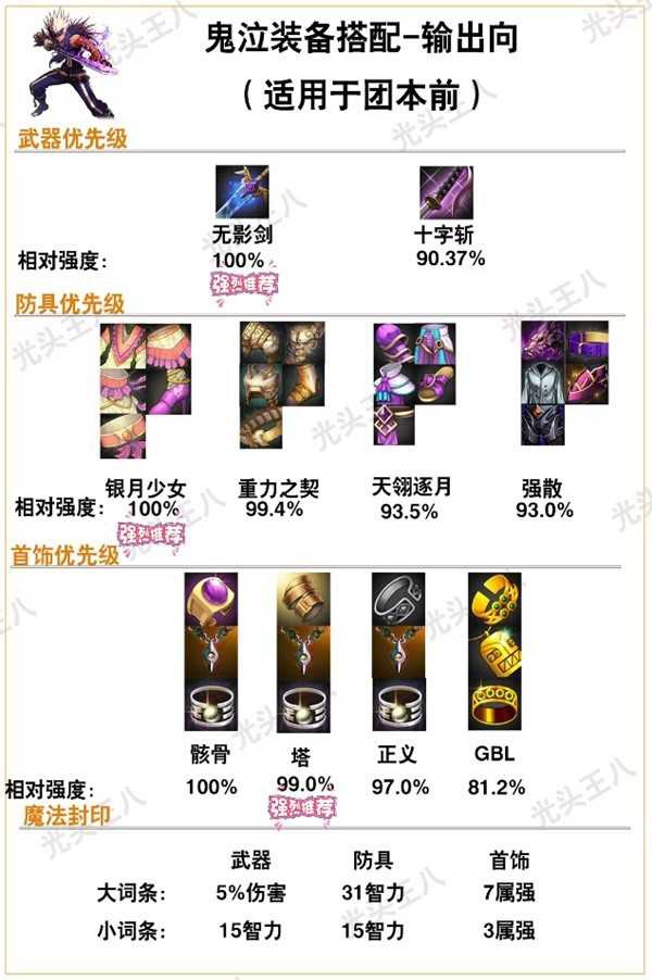 《地下城与勇士手游(DNF手游)》鬼泣不仅能够提供强力的增伤效果,还能进行输出,想要知道鬼泣该如何搭配装备的玩家请看下面“光头王八-DNF手游”带来的《地下城与勇士手游(DNF手游)》鬼泣毕业装备推荐,希望能够帮助大家。