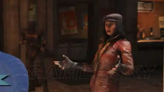 之后我们的主角老冰棍如同救星一般出现在Piper眼前,Piper也不会错过这个机会,立马就带上主角来到钻石城大门前,声称她为市长带来了大规模杀伤性武器,主角也因此有了进入钻石城的机会,接下来就是这个场景(Piper在左下角):