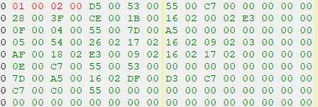 12. 回到内存,前两个技能就是我标红的2组数,根据我发的技能代码表,这次就修改程0100,0200这两个技能(内存中的数字都是16进制,我发的代码也是16进制可以直接使用,若是修改属性和等级,网上自行搜许进制转换表。这里就不普及16进制的内容了)