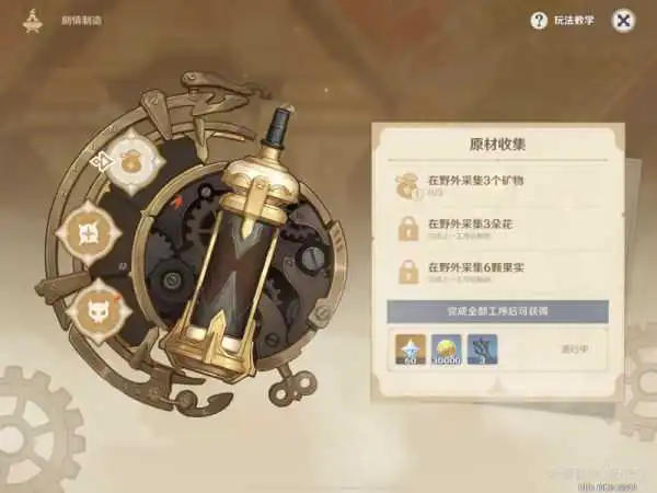 这里不给大家提供素材位置了,不同的素材机器人不同,可以随便转转,3块矿石、3朵花、6个果实。