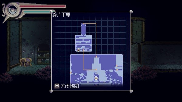 然后呢,初始废弃的实验室威胁等级1、果核镇威胁等级1、那么既然果核镇没有主线任务的线索,威胁程度4的教会飞艇又警告我不能靠近,自然我想着接下来是不是该去威胁等级2的地图转转了?结果威胁地图2,只有一个破碎平原是能去的,这个地图分为上下左右四个可探索方向,都有非常大(但是也非常空洞)的可探索区域,然而还是和主线无关。