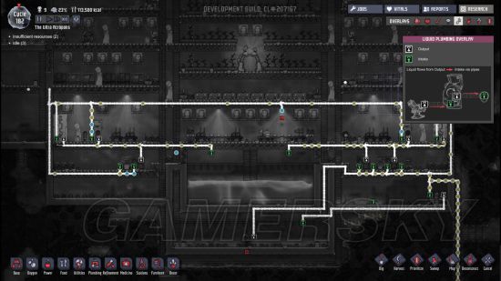 2.依据游戏中的文本说明,co2排除机 马桶 洗澡这三个原理都是“进水排污”,电解制氧只需进水。我们理所当然的认为一条管子输入清水一条管子输出污水。所以沙子问题就出现。然而“污水”不是“水”吗?恍然大悟,我把因缺沙子停止工作的净水系统污水管接到机器们的进水管系统上,奇迹发生了 四者工作正常。