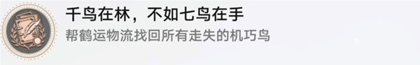 任务概述:帮助鹤运物流,找回走失的全部机巧鸟