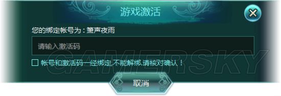 五、输入完毕后,系统会提示玩家是否确定将激活码与账号绑定,确认输入无误后勾选即可绑定