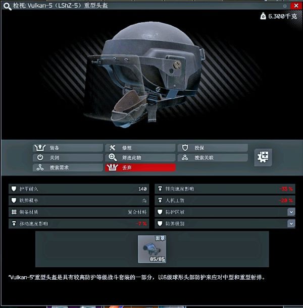 属性:头耳颈中级跳弹4级防护,眼颚中级跳弹6级防护。
