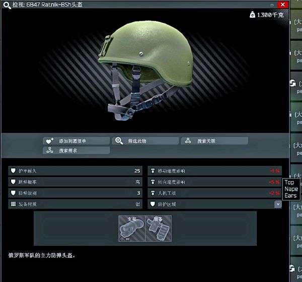 属性:除耳以外全位置中级跳弹3级防护。