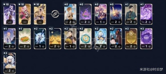 2.支援牌,场地牌,事件牌可以用提米*2,元素共鸣·交织之雷*2,本大爷还没有输!*2,交给我吧!*2,刘苏*2,元素共鸣·强能之雷*2,运筹帷幄*2,兽肉薄荷卷*2,白铁大剑,璃月港口*2,田铁嘴,参量质变仪*2,最好的伙伴!*2,送你一程*2,支援就交给我吧。*2,落羽的裁择,派蒙*2。