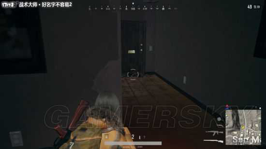 丁字楼A处背后的位置是没有窗户的,前面的窗户也看不到该点,处于楼外视野的死角。大门正对着该处位置,前方的小桌可以作为交火的掩体,由于距离较近,玩家也可以等到门开启之后,靠前一点,使用霰弹枪阴人。透过窗户,该处同样可以看到后门进入的玩家,丁字楼A处在防守上具有较大的优势,强烈推荐玩家来此。