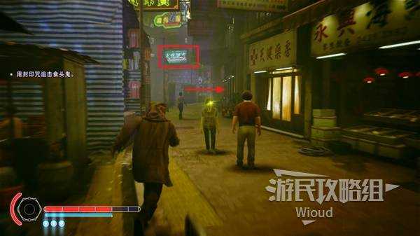 再次消灭一波敌人,发现吞噬封印咒的食头鬼去了夜店,依然从市场那条小巷过去。