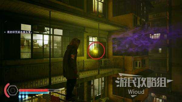 不要走动,在尸体的位置往左边高处看,可以看到一个记忆碎片,先跳到最高处的晾衣架,再附身阳台上的NPC即可拿到。