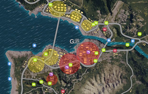 《绝地求生大逃杀》G港是比较适合开局的位置,枪械、物品、车辆及船只一应俱全,当然新手玩家对物资分布情况可能还不清楚,今天小编带来“canfengcss”分享的《绝地求生大逃杀》G港资源分布图,来了解一下吧。