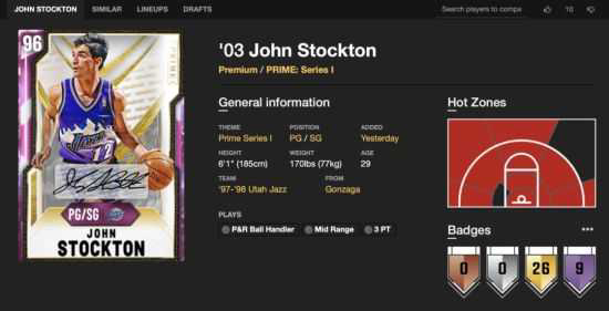 作为NBA历史助攻王,斯托克顿在联盟中征战十几年,与搭档卡尔马龙得到了“犹他双煞”的名号,《NBA2K20》游戏中,斯托克顿作为第一张能从卡包抽出来的粉钻球员卡会有什么样的表现呢?请看玩家“鸡哥”分享的《NBA2K20》MT模式粉钻斯托克顿球员卡数据解析,希望能帮到各位玩家。