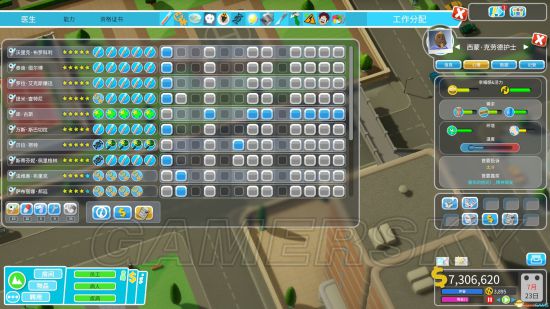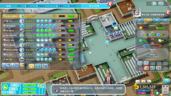 最需要注意的是,医生与护士不可招聘过多。只要限制了全科医生只能在全科工作后,其它的医生都是可以共享的,会自动到处跑。只要少量几个就够了。