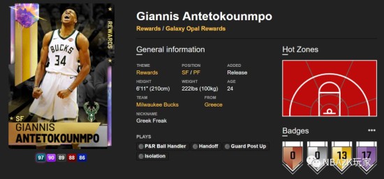 《NBA2K19》3月9日在PC端推出了史上最强的收藏家奖励卡——银河字母哥,其属性可以说让人望而生畏,下面就为大家带来“ASPIRIN”分享的《NBA2K19》银河蛋白石字母哥数据解析,一起来了解一下吧。