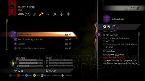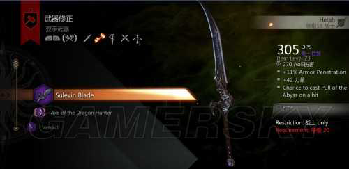 建议大家可以等级太低的就不要去了。拿到四个碎片后回到老家找矮人女铁匠修复,剑是20级时用的,图片中我没插符文,就这个属性。
