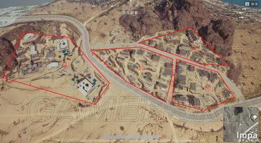 ③城内房屋最多区域,资源丰富。占地面积不大因此房屋之间布局紧凑,除了靠近城外马路的几栋房屋其他地方地势较为平坦。看似复杂,但由于大多数房屋楼顶都能爬上去,无疑减少了不少难度。