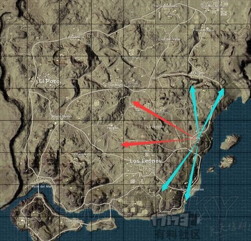 向北和向南转移都比较好走,一般不是从右边海岸飞出来的航线地图右边人都不多,可以放心走公路,如果怕有人走山路也是可以的,这边的山路只要不是UU车都非常好开。右边圈对于从Impala出来的人来说是最舒服的,物资够的话直接找个山头或者路口收过路费。