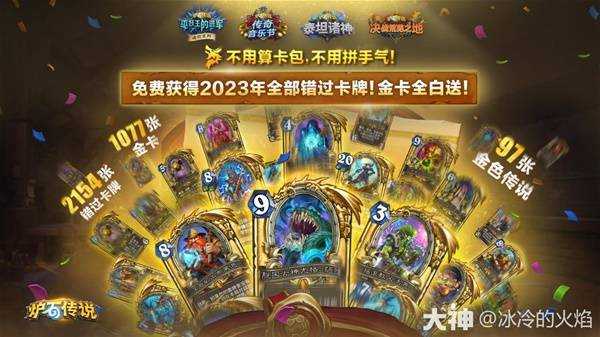 只要在9月25日登录《炉石传说》,所有国服玩家(包括新注册玩家)即可免费获赠独狼年标准模式错过的所有普通和金色卡牌,共计2154张卡牌,包括全部97张金色传说!