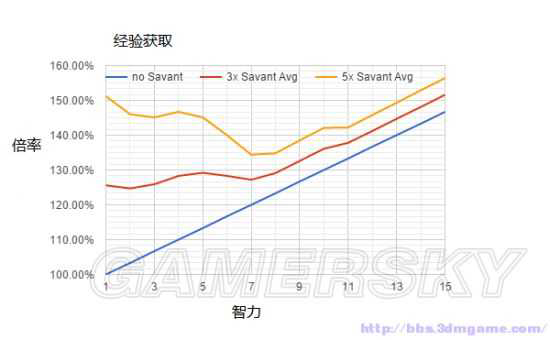 同时根据上图还可以得出结论,无论你智力有多高,加傻瓜学者总是会提高经验的。只是智力1的时候提升最大。