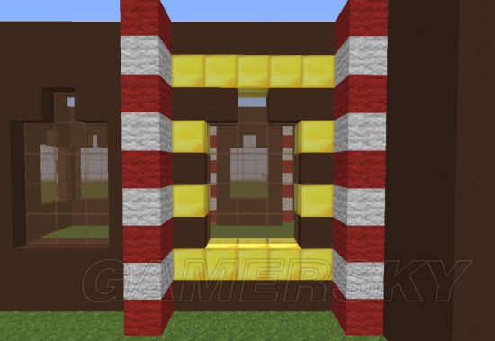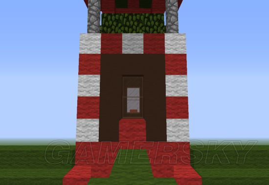 ①在楼顶第五格往右边扩一格并向前延伸到比门长一格