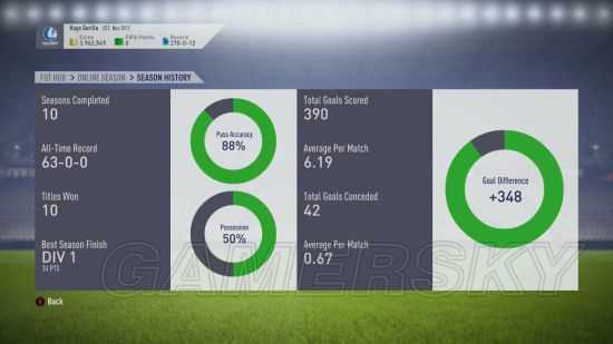 63场全胜,无败绩!共进390球,场均进6.19球。共失42球,场均失球0.67个。