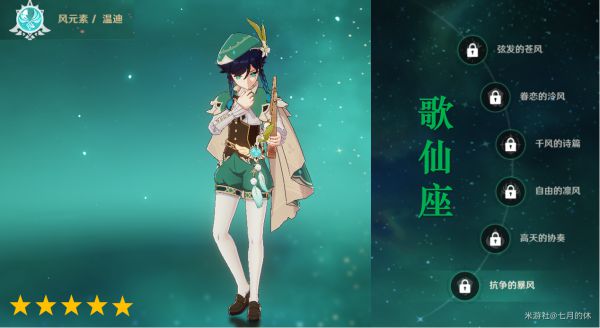 角色定位:风元素持续输出角色,具有极强的控场能力,具有较强的辅助能力。