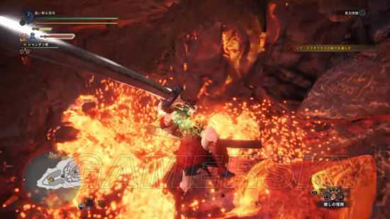 与熔山龙作战的地点并不是常规的狩猎地图,前期主要战场会在熔山龙的身体上,而到了后期将会移动到城墙障碍上。