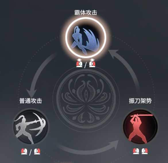 普通攻击克制振刀架势,振捣架势克制霸体攻击,霸体攻击克制普通攻击。