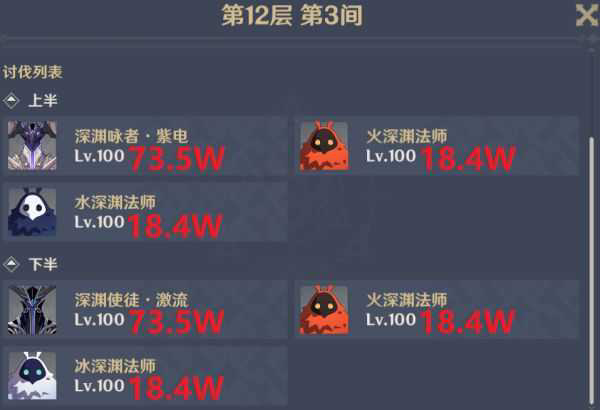利用上表我们可以算出本期深渊的两个剧毒关卡的怪物血量。