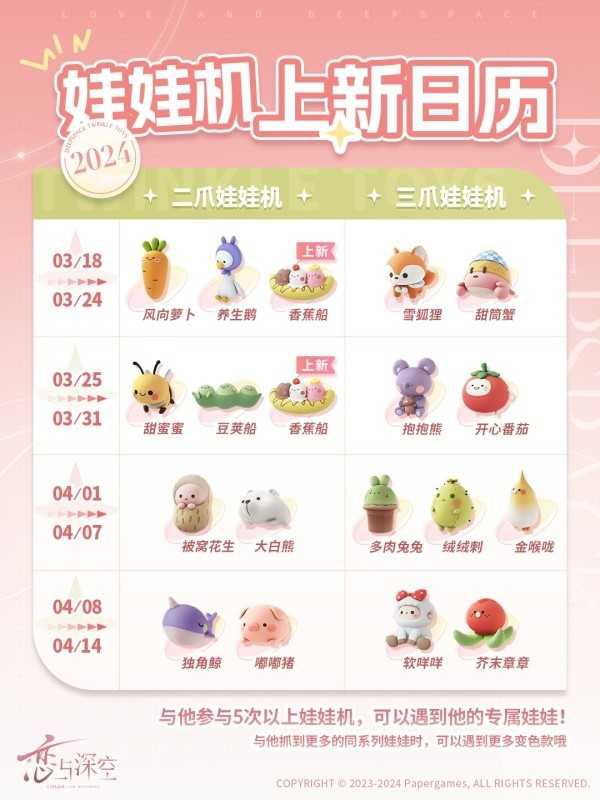 《恋与深空》每隔一段时间都会在娃娃机中增加新的娃娃,其中还有一些是二爪娃娃机限定的新娃娃,例如香蕉船。下面就为大家介绍一下《恋与深空》平衡捕手抓娃娃100%成功技巧,希望对大家有所帮助。