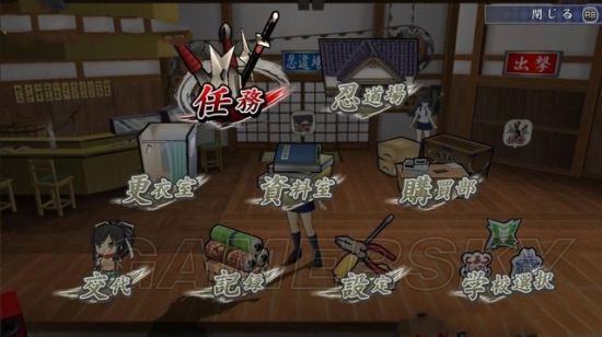 在忍部屋中有任务、忍道场、更衣室、资料室、购买部、记录等功能,后面会一一介绍。