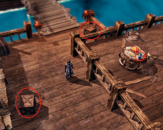 在碧月阁使用轻功来到神经质海寇这边,破坏左侧箱子