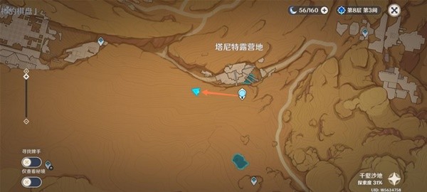在地图右上角,从图示锚点往北边走,路过赛跑的丘丘人。