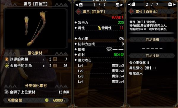 百龙弓的瓶插槽:毒+减5攻,麻+减10攻,眠+减10攻