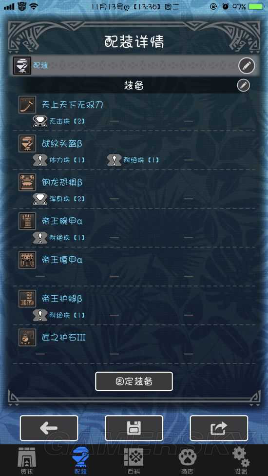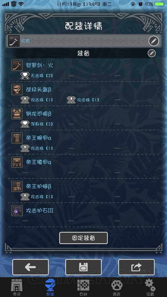 双天刀不用说的,一级孔有条件换攻击达人,火太只是双天基础上换刀换护石也没啥说的,达人艺加匠2和自带白应该是够用的(毕竟二期武器现在用不到),最后一个重点就在渣渣辉身子的三级孔怎么用了。