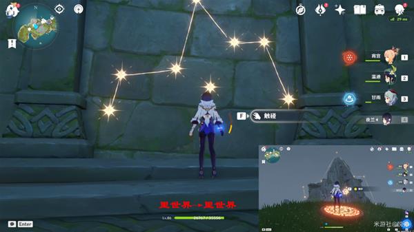 里世界方碑洞内触碰星象墙壁,就会出来一个星核,跟随到右下角位置即可拾取。