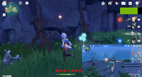 里世界山崖下方,有隐藏方块,可以利用水元素方碑现形后来到这捕获。