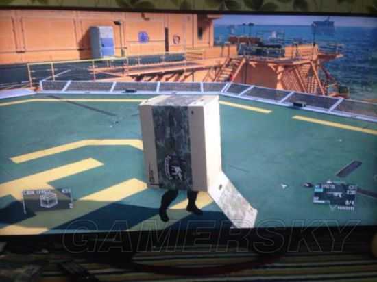 3、蹲下时。1.直接瞄准会从纸箱顶部进入射击模式。2.用CQC会直接收起纸箱。3.在纸箱内按方框会从正面扑出去。